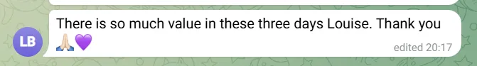 The magic happened when I joined her Email Energy Revival: Let's Dance, 3 day audio training. (You can just feel the energy, can't you?) It was packed with straight forward, actionable insights that I implemented straight away. There was so much value in this short, powerful programme. I sent my first email in ages and did it with a smile on my face!